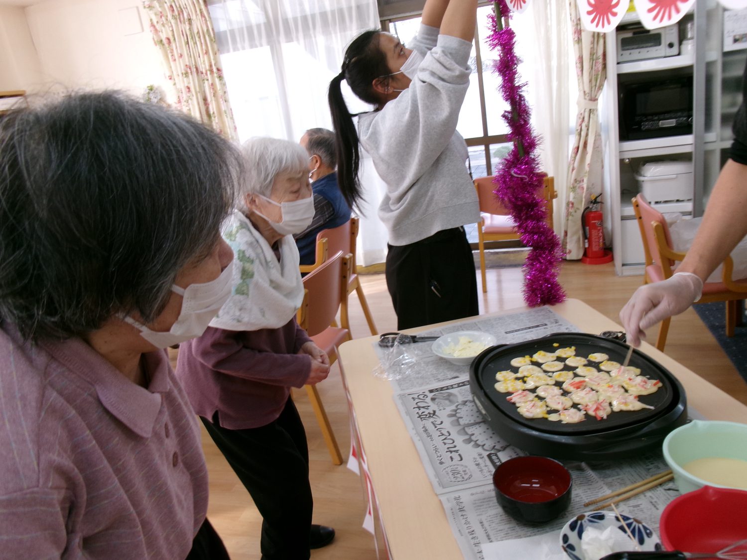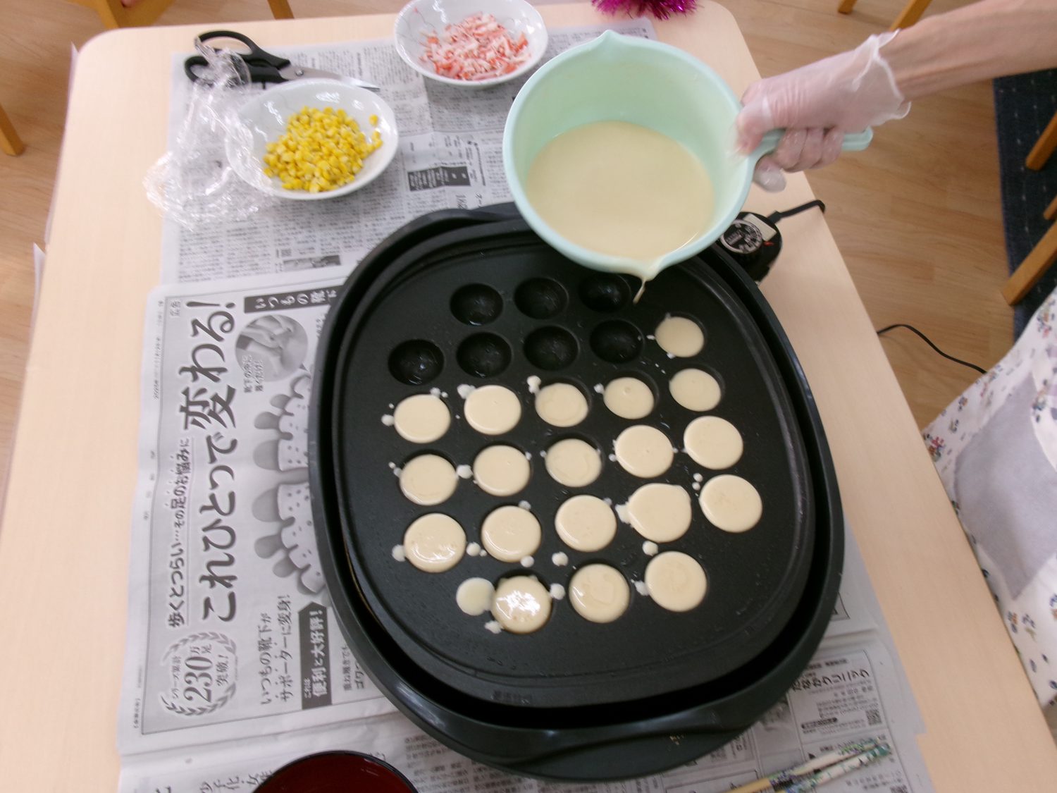 生地作りは利用者様と一緒に行い焼くのは火傷の危険もあるので職員が焼きました。
