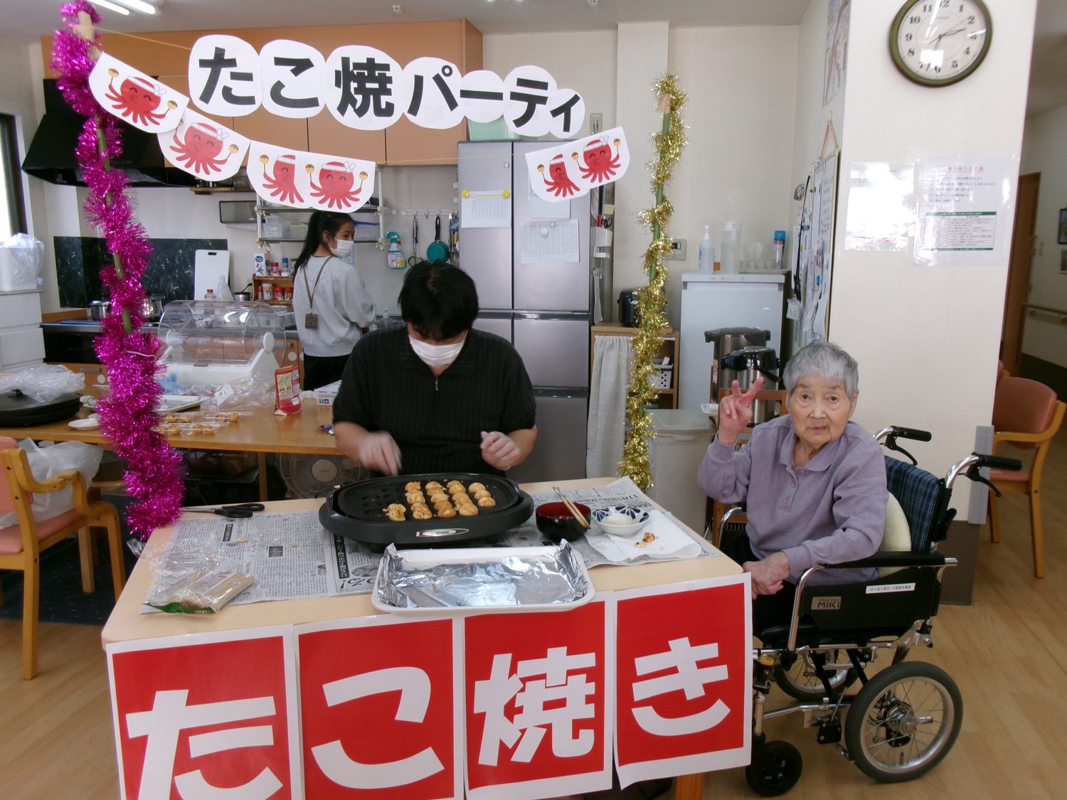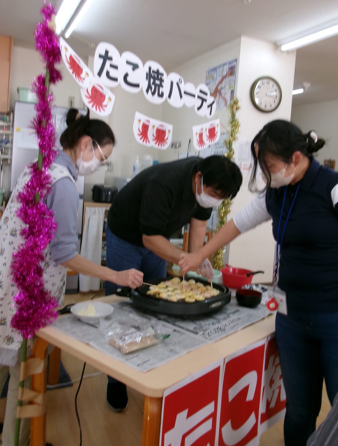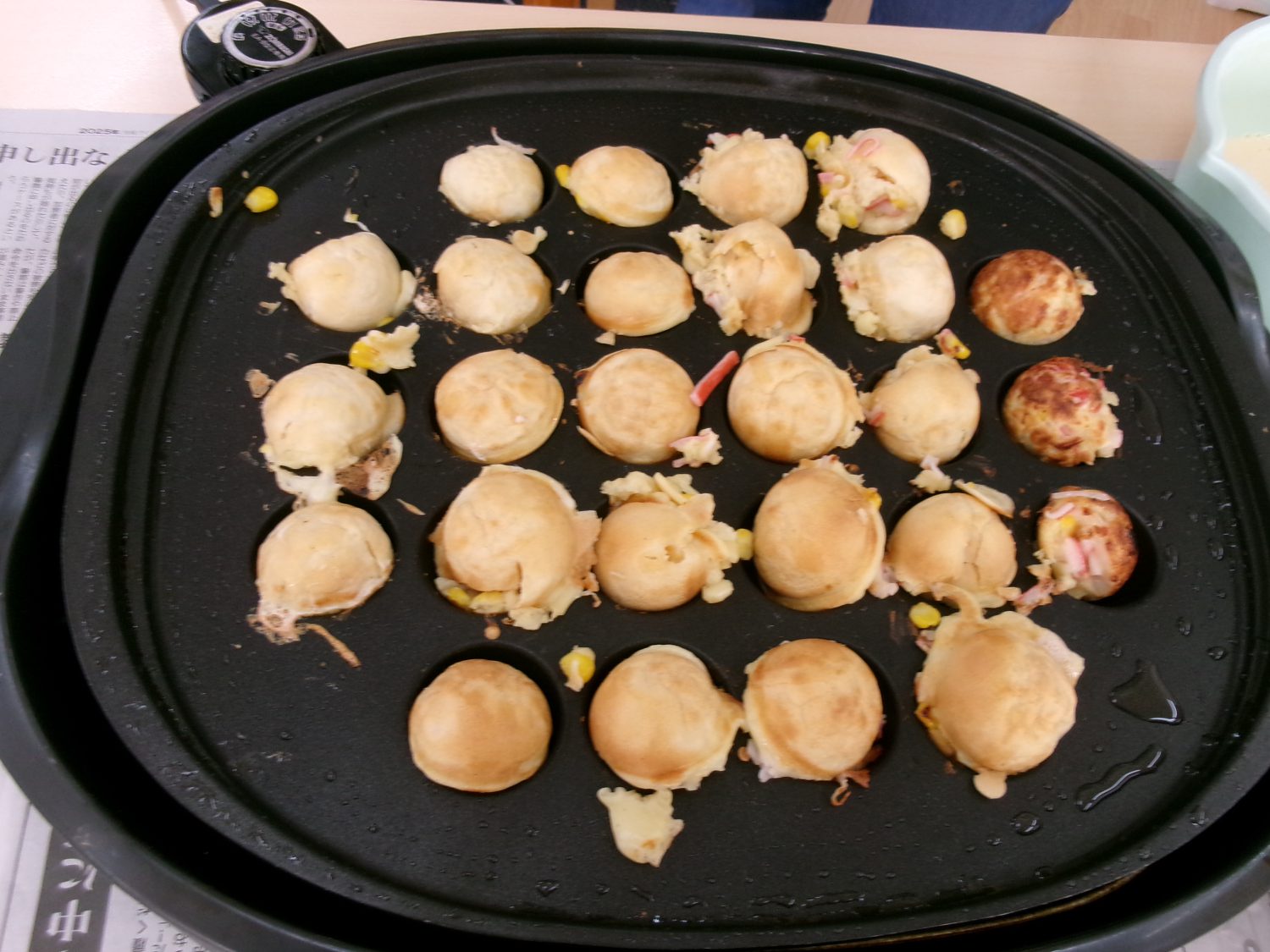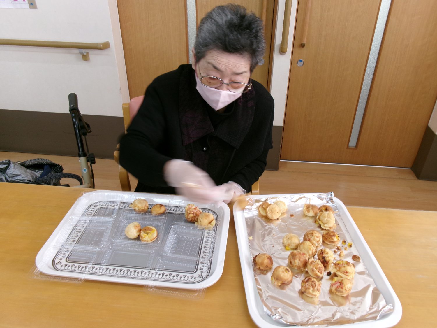 焼けたたこ焼きは利用者様にタッパに盛り付けて頂き職員も何が入っているか分からない様にしました。