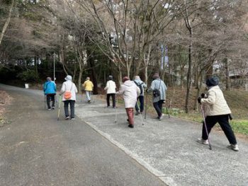 坂道も何のその、駐車場から本殿までのノルディックウォークを楽しみました。参拝もし、全員の健脚を祈願しました。