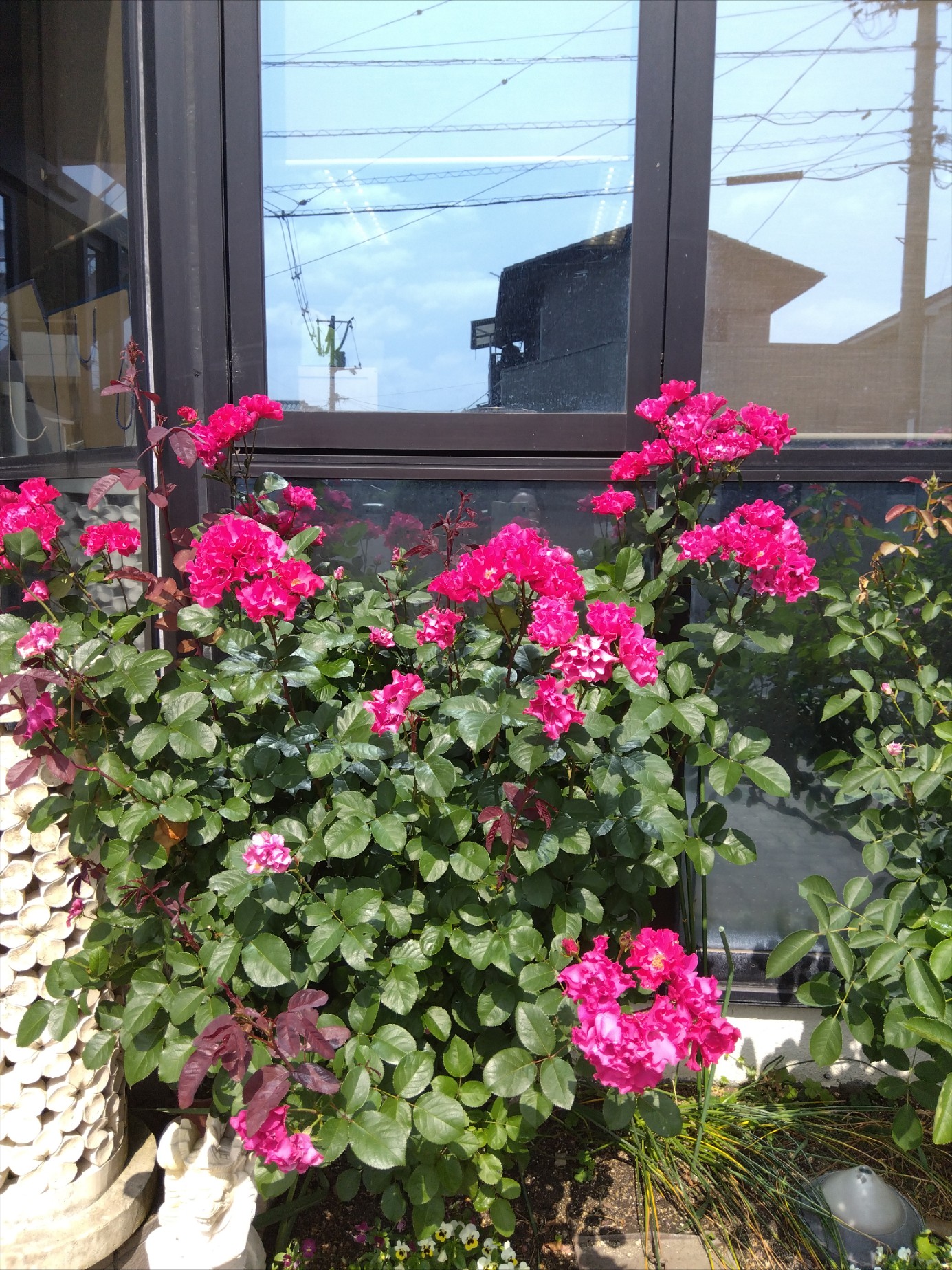 我がゆうゆう戸手の玄関先にも福山市から譲り受けたバラが今が盛りと