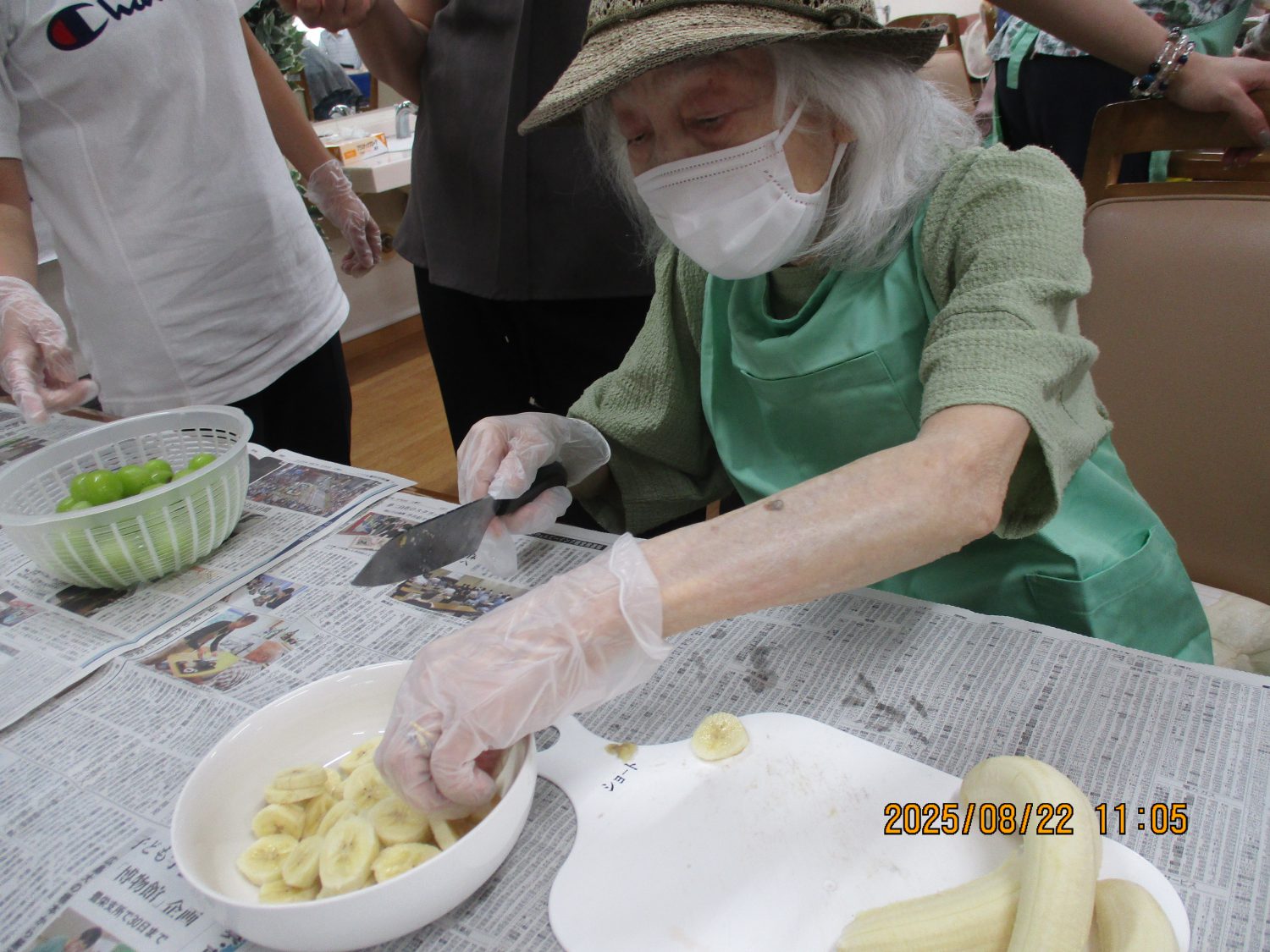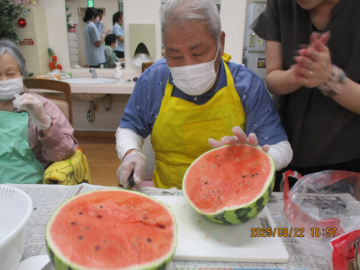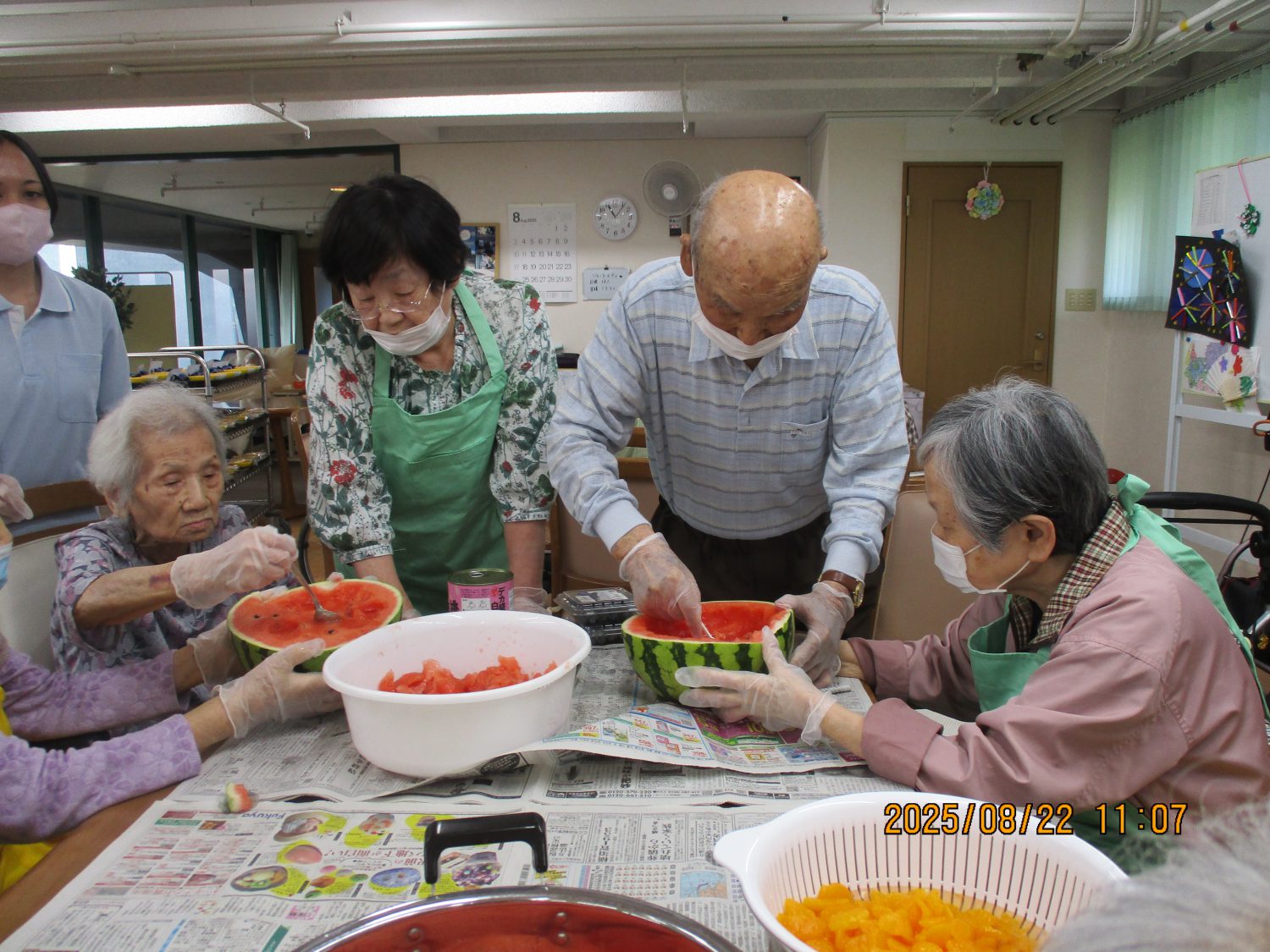 ショートステイでは8月22日にフルーツポンチを作りました🍉