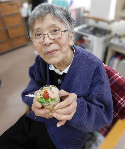 完成したちらし寿司を見て「きれいじゃな~」「はよ食べたいなあ」と食べるのを楽しみにされていました(^^♪