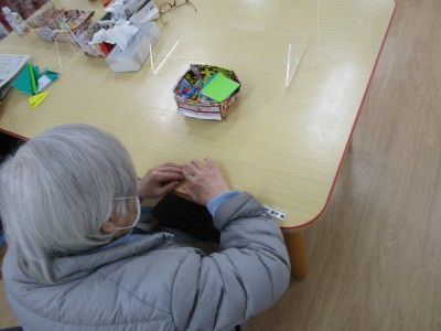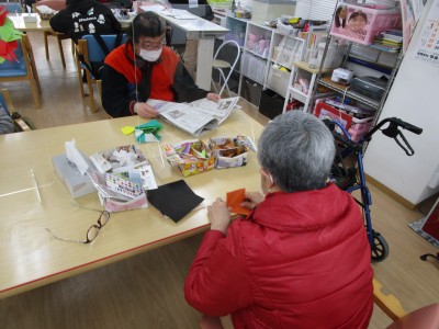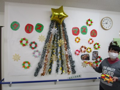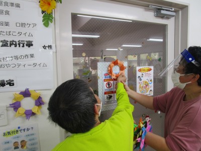 今、生活介護ゆうゆう奈良津では、12日後に行われる行事を楽しむために、皆でフロア内を