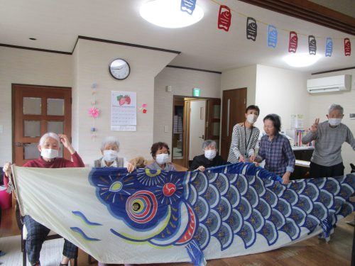 そして、ゆうゆうの家・新市でも、鯉のぼりを広げてみましたよ。