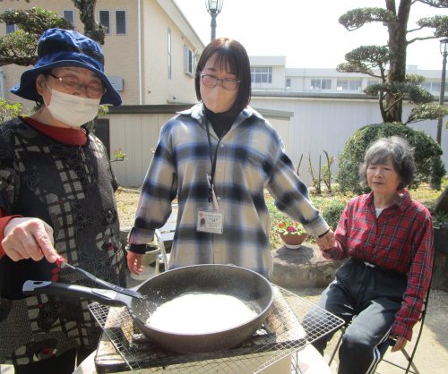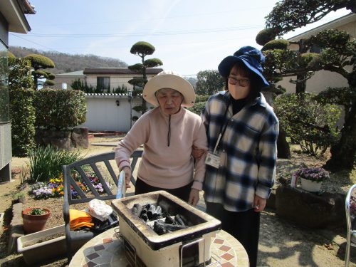 さて、ゆうゆうの家・新市では、先日お庭にて