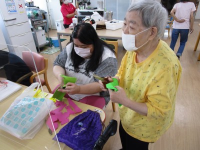 生活介護のフロアでは、ブドウやお月様を作ったり、オリジナルゲームで楽しんだり、