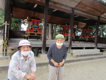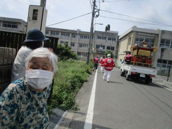 お祭り当日の朝には、町内を周る際にゆうゆう新市の前で休憩され、