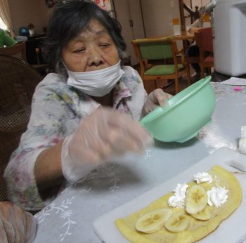 また、ゆうゆうの家では、おやつ作りでクレープを作りました。